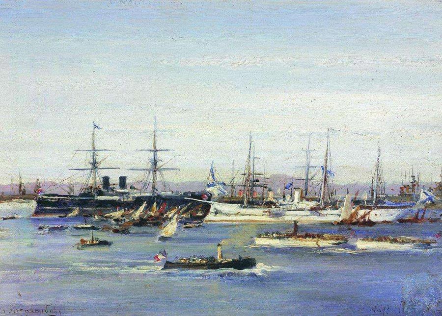 Боголюбов Алексей Петрович. “Фрегат Александр Невский и другие корабли под командованием контр-адмирала Лесовского на пути в Америку во время войны1863–1865 гг.“ (1863 г.).*.jpg, 900×645, 168 Kb
