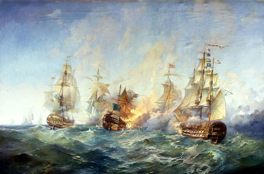 Блинков Александр Александрович. “Сражение у острова Тендра 28-29 августа 1790 года“ (1955 г.).*.jpg, 900×594, 139 Kb