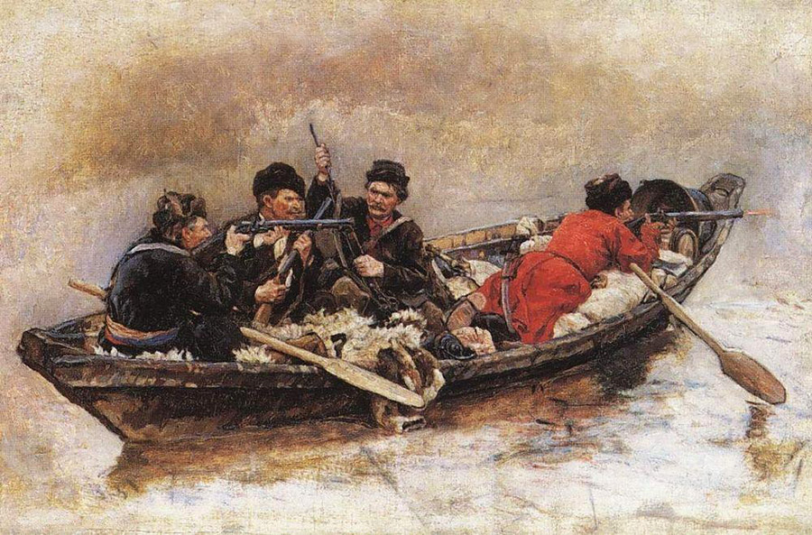 Суриков, Василий Иванович. “Казаки в лодки“.