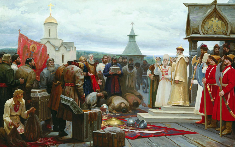 Чикуньчиков, Сергей Владимирович. “Приход посольства Ермака к Ивану Грозному“.*.jpg, 900×565, 184 Kb