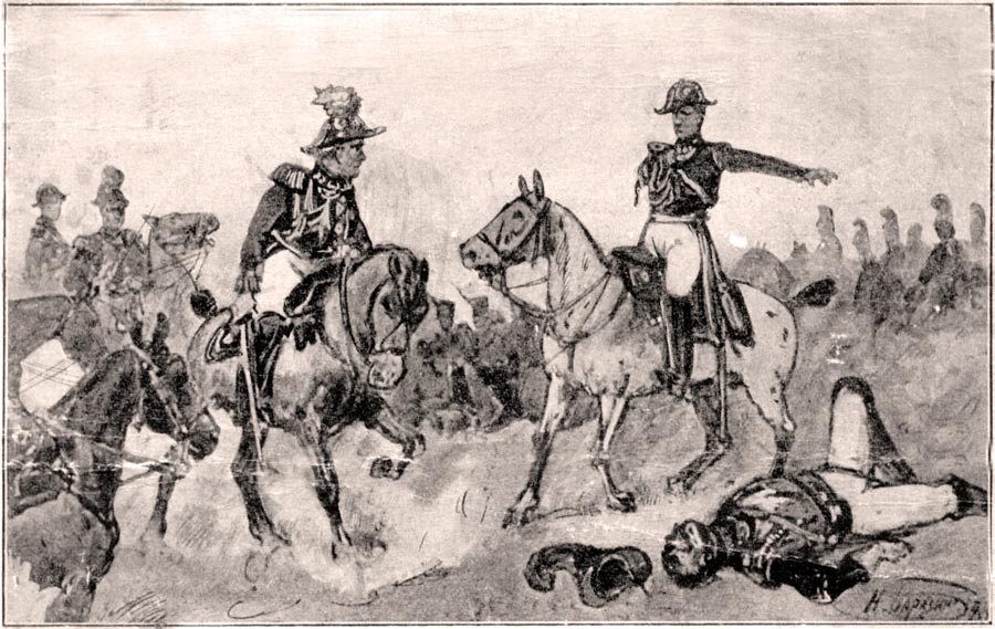 Каразин Н.Н. Рисунок “Адъютант Бибиковъ подъ Бородиномъ“.