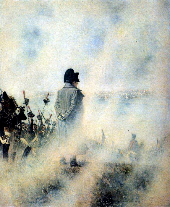 © Интернет-проект «1812 год» (http://www.museum.ru/museum/1812/index.html) Наконец настал тот знаменательный день, которого с таким нетерпением ожидал Наполеон, его маршалы, его солдаты: они дошли до Москвы. В два часа дня 2-го сентября Наполеон въехал на Поклонную гору, находящуюся в 3-х верстах от Москвы, и… остановился… Зрелище великолепное, не виданное прежде, развернулось перед его глазами. Протянувшись на возвышенности, разбегаясь широко в стороны домами, рисуясь в синеве неба, горя в солнечных лучах золотом куполов своих бесчисленных соборов, церквей, монастырей, увенчанная точно сказочной короной своим Кремлем, величественная в своей оригинальной красоте, таинственная, загадочная предстала взору завоевателя Москва, древняя столица России. Москва!… Здесь должны были окончиться нечеловеческие труды, понесенные Великой армией, и сам ее предводитель убежден был, что занятие им Москвы знаменует конец войны. – «Так вот наконец этот знаменитый город! да и пора уже!». С этими словами Наполеон соскочил с коня, взял подзорную трубу и принялся долго, внимательно рассматривать Москву с ее окрестностями, мечтая о том торжественном моменте, который должен наступить: сейчас явится депутация от этого знаменитого города с мольбою о пощаде, и он, император, скажет им милостивые слова… Но никого не было, никто не встречал, никто не подносил ему ключей от столицы, как это бывало всегда прежде. Наполеон подал знак. Раздался пушечный выстрел, и по этому сигналу французские войска, точно грозный неудержимый поток, разом прорвавший плотину, со всех сторон устремились к городу, оглашая воздух кликами: «Да здравствует император!». Наполеон подъехал к Дорогомиловской заставе и остановился. Здесь то уже должна была встретить его депутация от Москвы, умоляющая о пощаде города… Чего они медлят там, эти русские варвары?.. Но никого не было. Тишина царила в стороне города. Молчали колокола ее сорока сороков церквей. Наконец возвращаются посланные вперед несколько офицеров. Они приближаются, они докладывают Императору… Что такое?.. Не может быть!.. Ошеломляющее известие, противоречащее здравому смыслу… – «Москва опустела! Это невероятно. Надобно удостовериться в том. Ступайте туда и приведите мне бояр». «Он думал, пишет граф Сегюр, что эти люди, охваченные гордостью или парализованные ужасом, неподвижно сидят у своих очагов, и он, который всюду встречал покорность со стороны побежденных, хотел возбудить их доверие тем, что сам явился выслушать их мольбы». Император подозвал к себе графа Дарю и отправил его в город.«Вооружившись подзорной трубой, рассказывает офицер 2-го кирасирского полка французской армии, он молча рассматривал всю эту массу домов, церквей и дворцов. Наконец, из Москвы явился адъютант начальника штаба армии (Бертье) в сопровождении какого-то штатского, одетого подобно пажу герцога Мальборо, во все черное; длинный и худой, лет сорока, штатский оказался живущим в Москве негоциантом-французом. Он поклонился Императору и со шляпою в руке встал у головы его лошади, у левого стремени и таким образом очутился лицом ко мне, а Император оставался между нами. Сначала он только отвечал на предложенные вопросы, и я очень сожалел, что не слышал ни вопросов, ни ответов; но, мало по малу, он оживился, левой рукой взял гриву лошади Его Величества и начал размахивать право