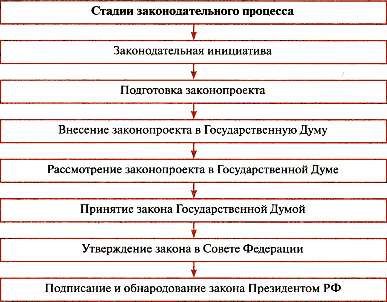 Таким образом, законодательный процесс – это последовательность определённых законом процедур разработки, внесения на рассмотрение, принятия и введения в действие законов.