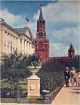 Улица Калинина. Слева – здание Манежа, в центре – кремлёвские башни Кутафья и Троицкая