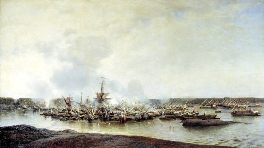 Боголюбов, Алексей Петрович. “Сражение при Гангуте 27 июля 1714 года (Третий момент)“ (1877 г.).*.jpg, 900×507, 168 Kb
